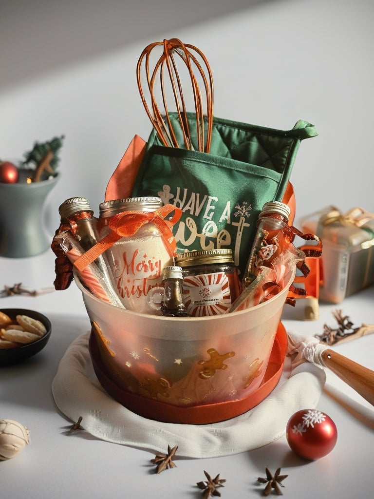 Food is Love. Guft the gift of Christmas morning pancakes! Comes with all the fixings, including; pancake mix, chocolate chips, sprinkles, and syrup. Also has a Christmas pot holder, wisk and candle. Enjoy the reusable basket for years to come.